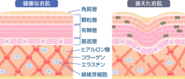 真皮という土台が崩れることでシワやたるみの原因になります。